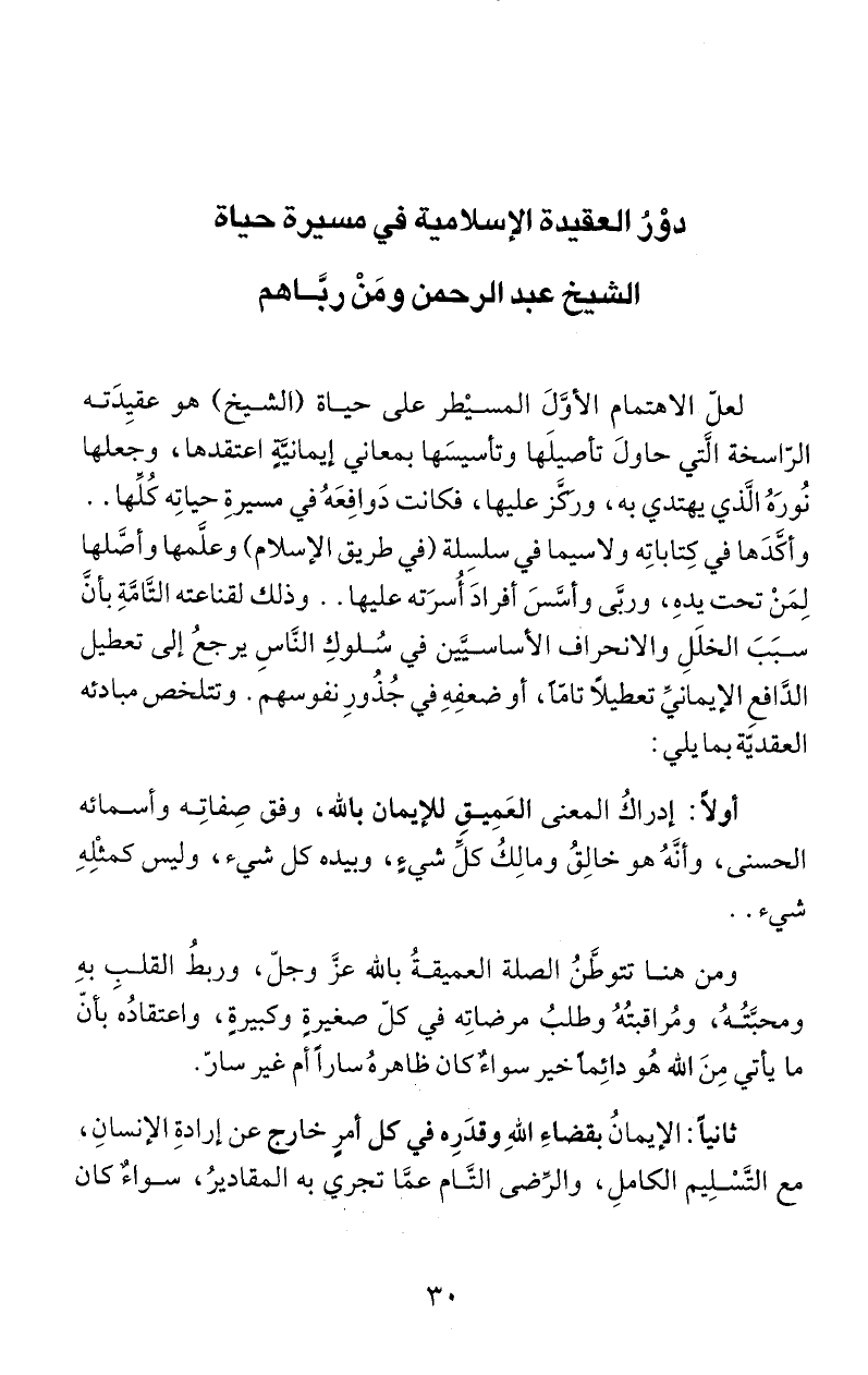 لعلّ الاهتمام الأوَّلَ المسيْطر على حياة (الشيخ) هو عقيِدَته