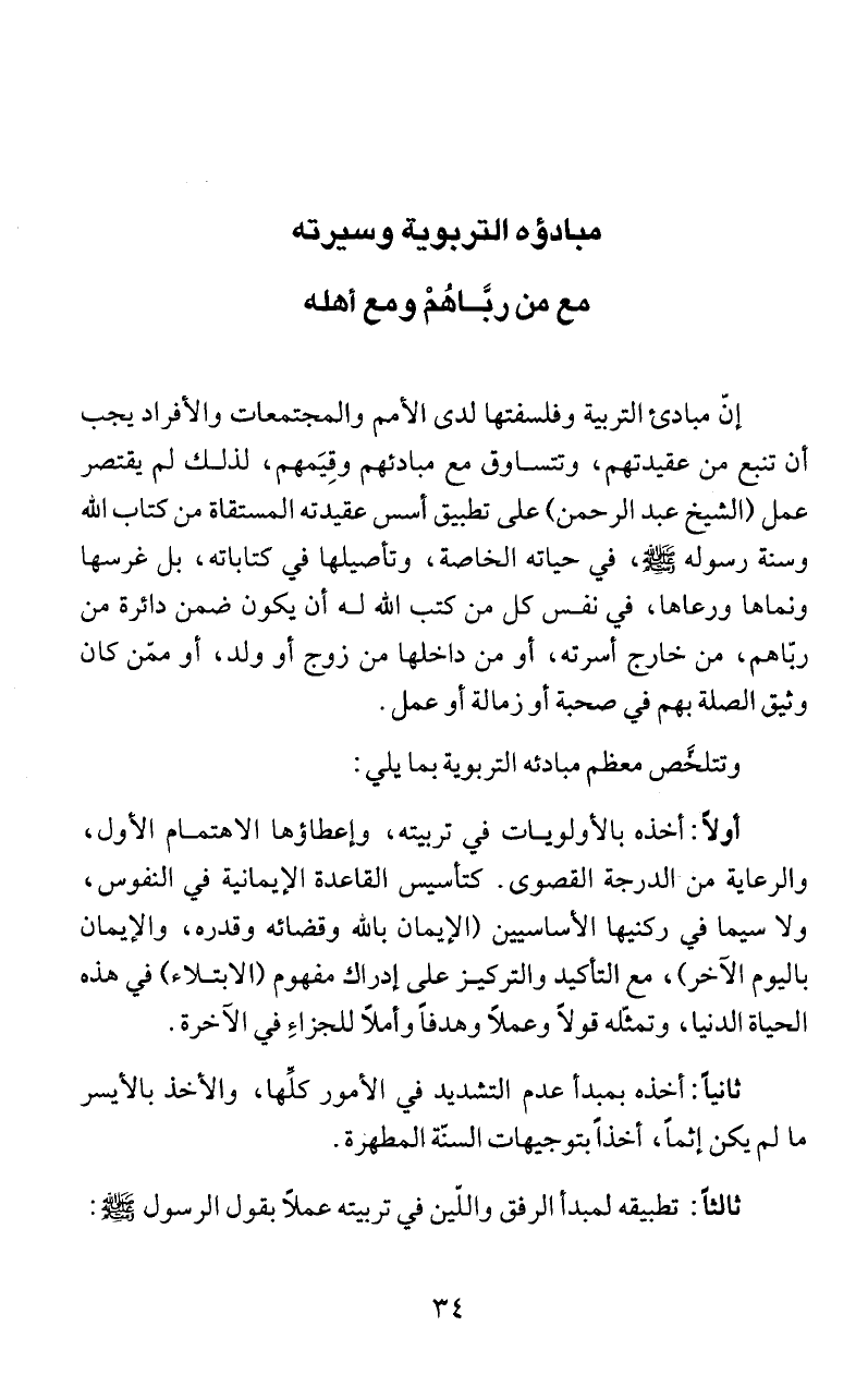 والرعاية من الدرجة القصوى. كتأسيس القاعدة الإيمانية في النفوس،
