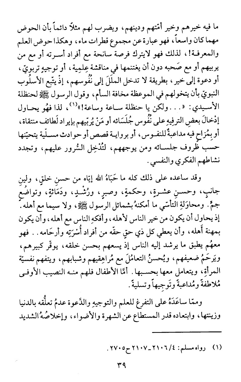 جم. ومحاوَلةِ التأسّي ما أمكنهُ بشمائل الرسول ع! ي!، ولا سيما مع أهله.