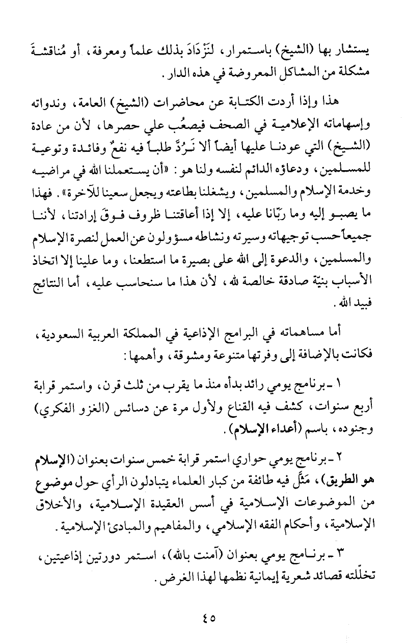 2 - برنامج يومي حواري استمر قرابة خمس سنوات بعنوان (ا لإسلام