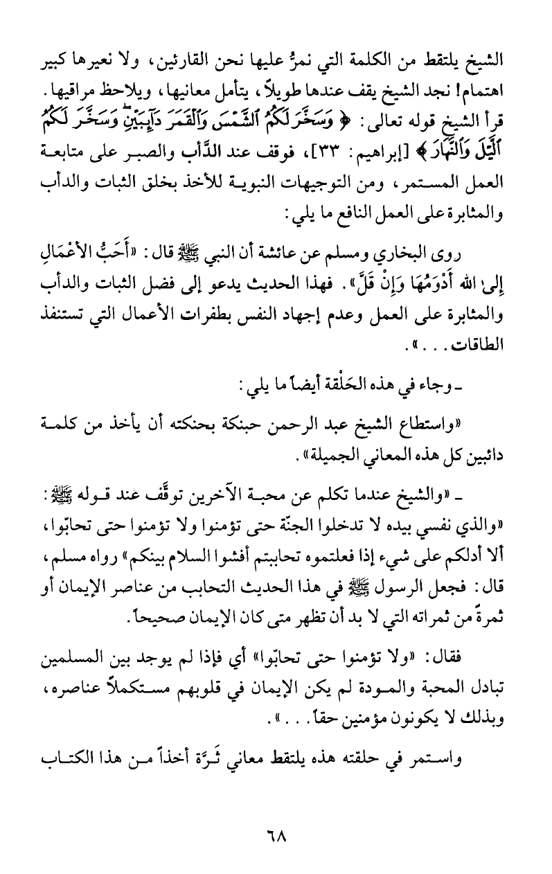 اهتمام! نجد الشيخ يقف عندها طويلاَ، يتامل معانيها، ويلاحظ مراقيها.