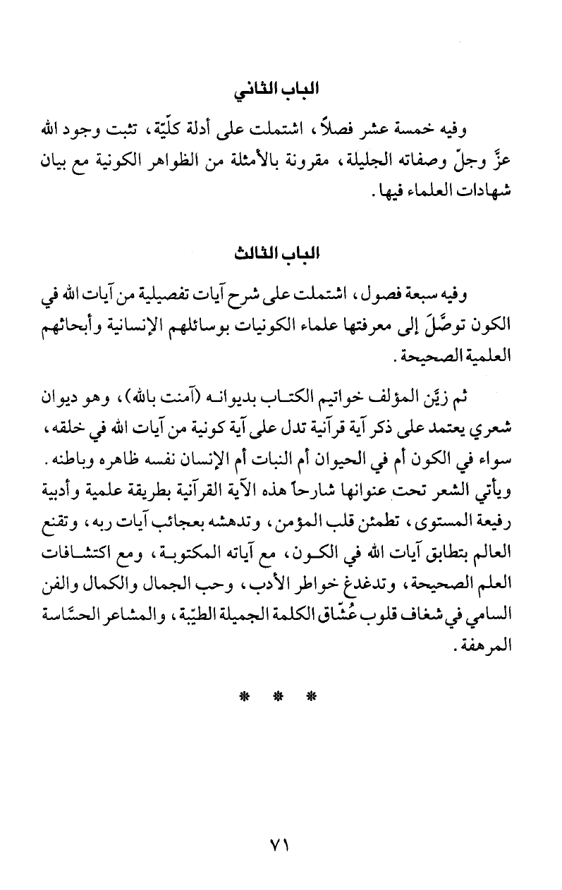وفيه خمسة عشر فصلأ، اشتملت على أدلة كلّيّة، تثبت وجود الله