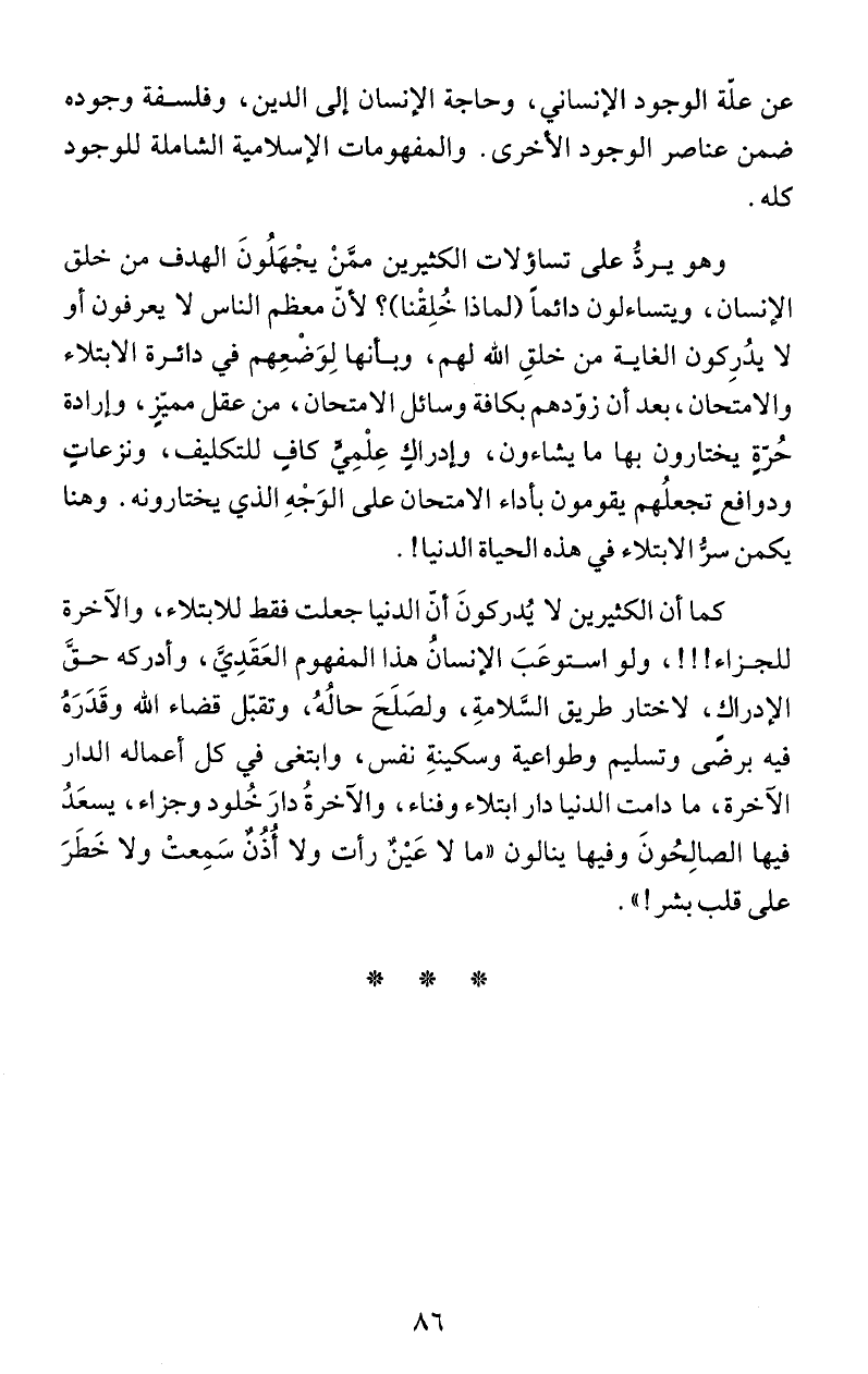 عن عفة الوجود الإنساني، وحاجة الإنسان إلى الدين، وفلسفة وجوده