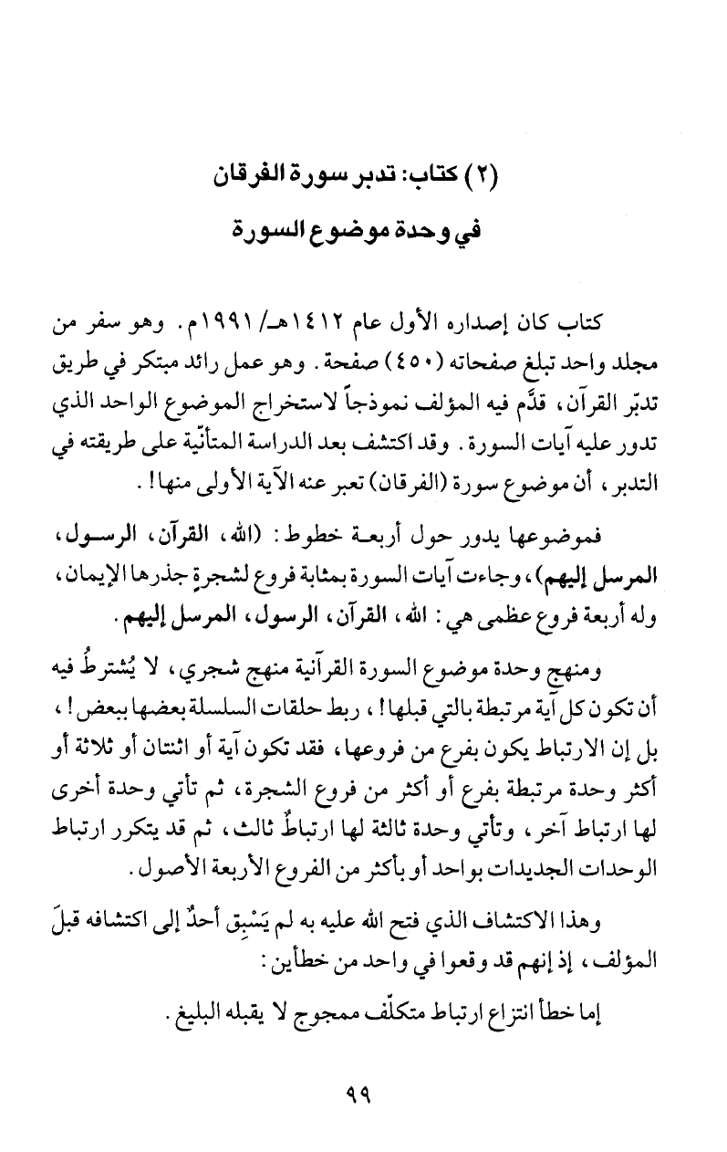 تدثر القراَن، قدَم فيه المؤلف نموذجاً لاستخراج الموضحوع الواحد الذي