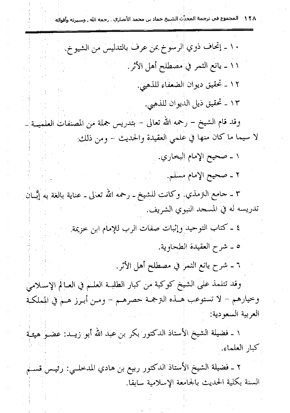 3- جامع الترمذي. وكانت للشيخ "رحمه الله تعالى" عناية بالغة به إبَّان تدريسه له في المسجد النبوي الشريف.