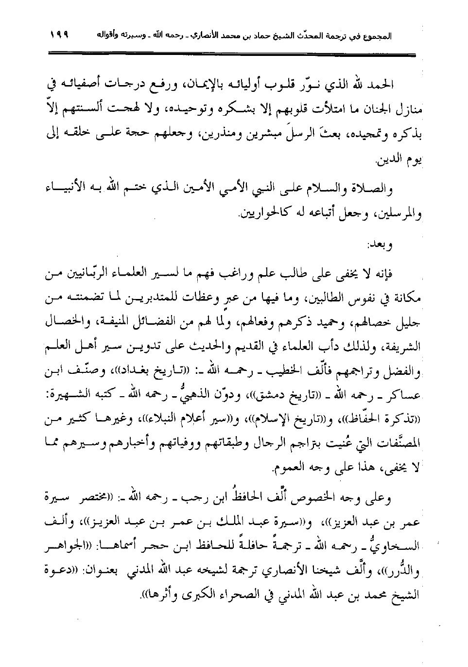 كتاب المجموع في ترجمة العلامة المحدث الشيخ حماد بن محمد الأنصاري (رحمه الله) (اسم الجزء: 1)