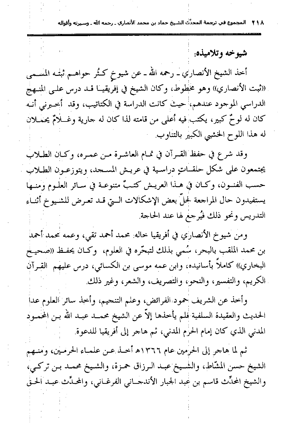كتاب المجموع في ترجمة العلامة المحدث الشيخ حماد بن محمد الأنصاري (رحمه الله) (اسم الجزء: 1)
