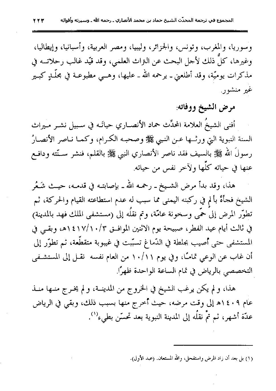 كتاب المجموع في ترجمة العلامة المحدث الشيخ حماد بن محمد الأنصاري (رحمه الله) (اسم الجزء: 1)