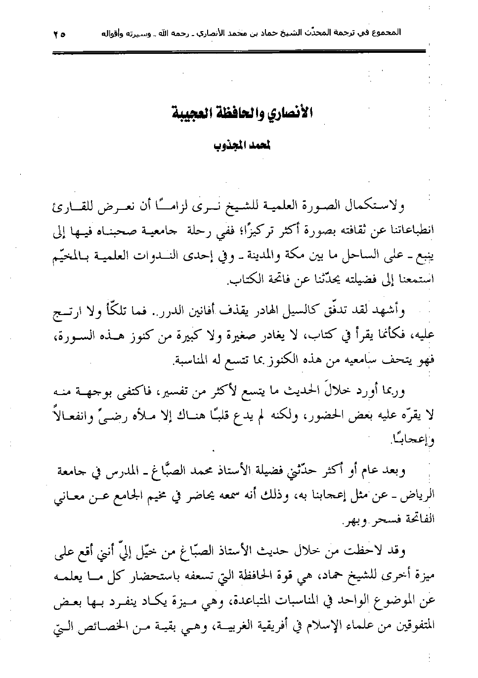 كتاب المجموع في ترجمة العلامة المحدث الشيخ حماد بن محمد الأنصاري (رحمه الله) (اسم الجزء: 1)