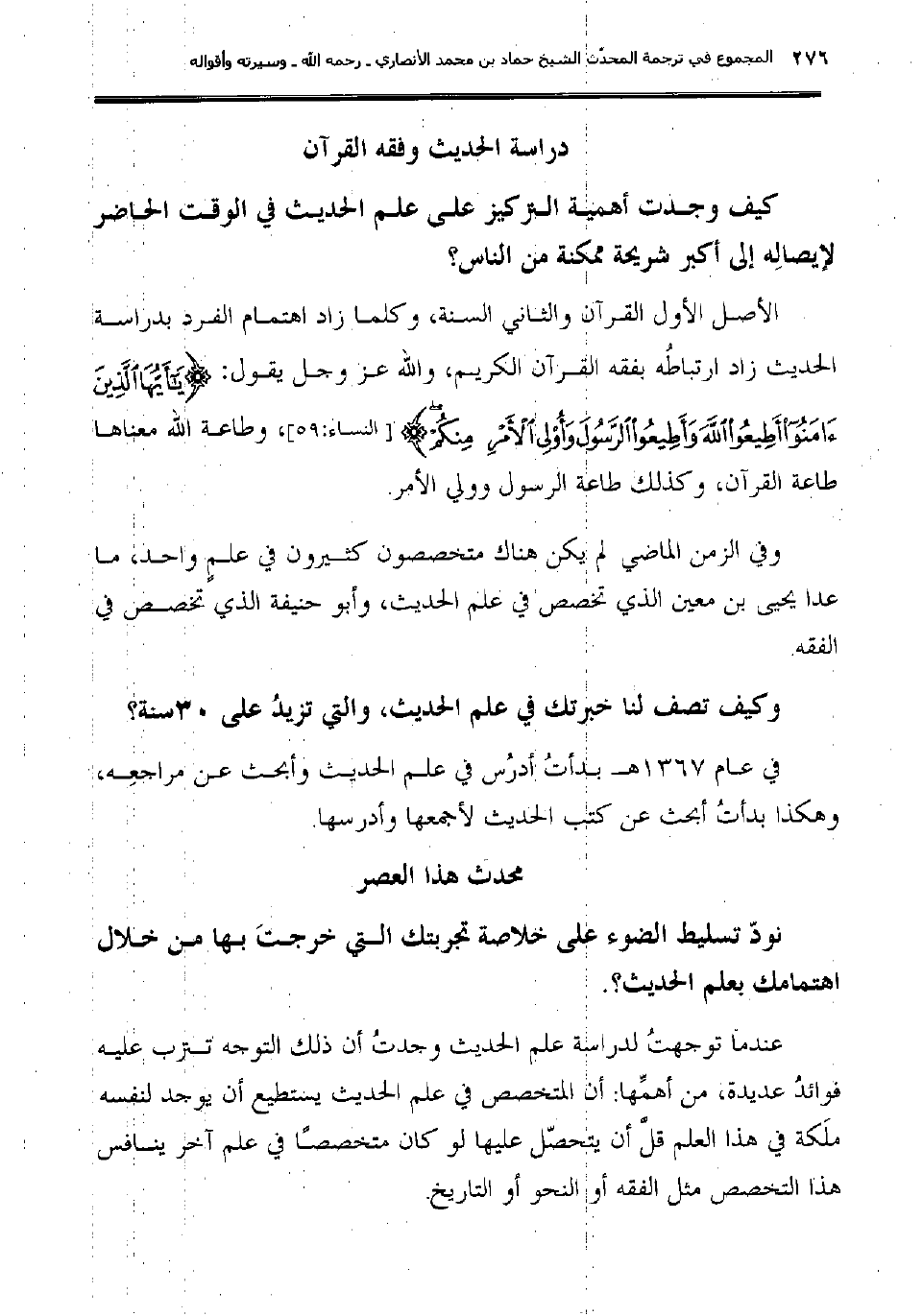 كيف وجدت أهمية التركيز على علم الحديث في الوقت الحاضر لإيصالِه إلى أكبر شريحة ممكنة من الناس؟