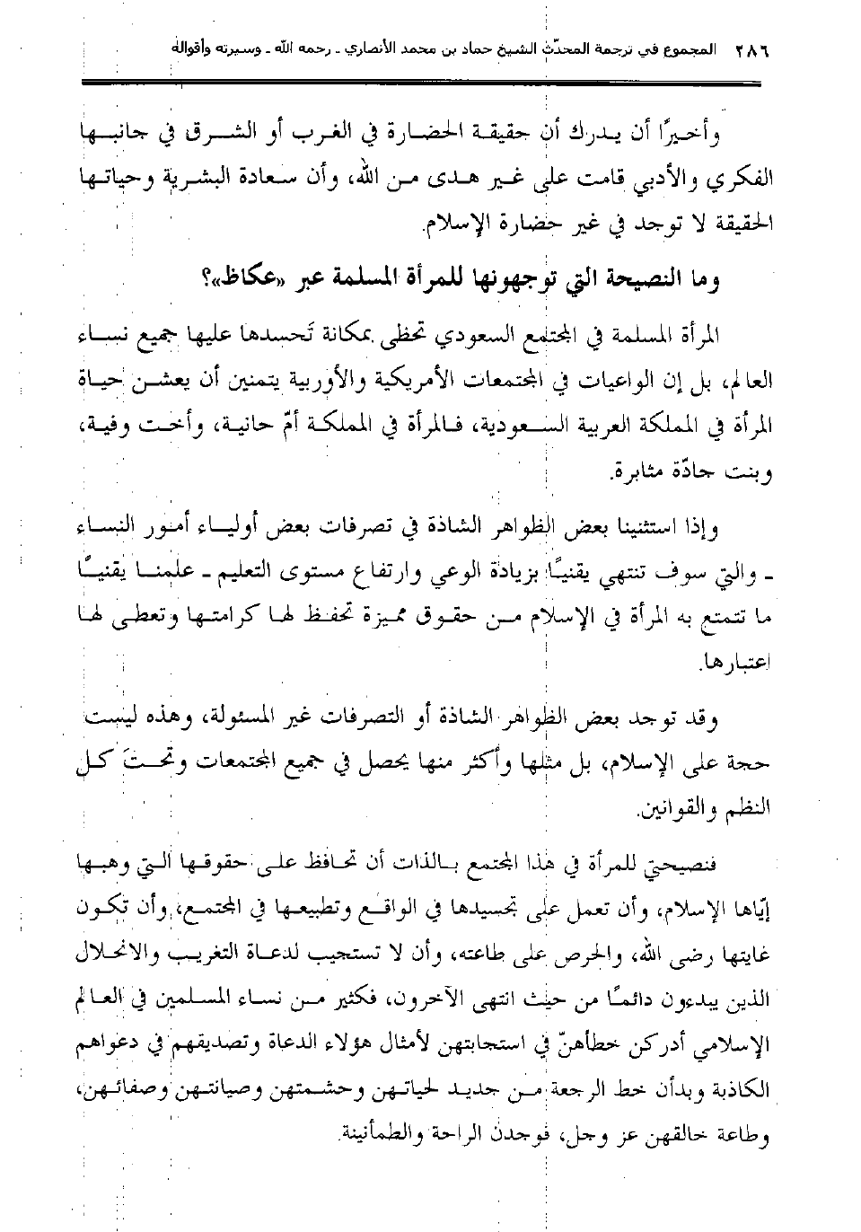 وما النصيحة التي توجهونها للمرأة المسلمة عبر "عكاظ"؟