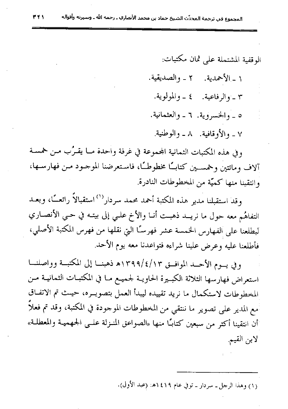 الوقفية، فذهبنا معه إلى المكتبة الوقفية المشتملة على ثمان مكتبات: