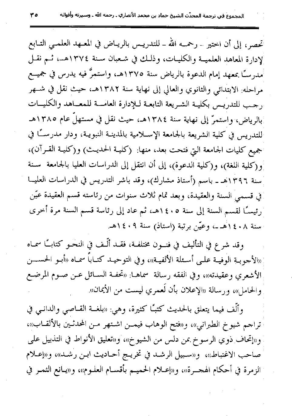 كتاب المجموع في ترجمة العلامة المحدث الشيخ حماد بن محمد الأنصاري (رحمه الله) (اسم الجزء: 1)