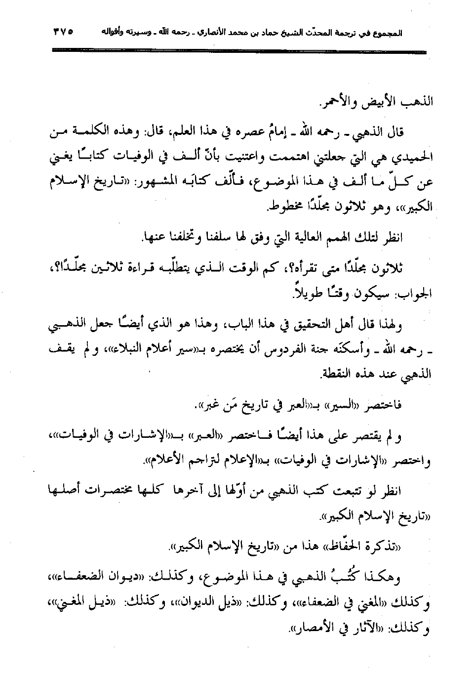 "تذكرة الحفّاظ" هذا من "تاريخ الإسلام الكبير".