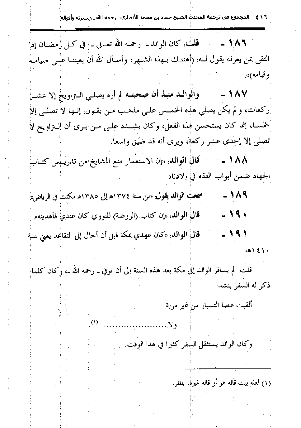 191- قال الوالد: "كان عهدي بمكة قبل أن أُحال إلى التقاعُد يعني سنة 1410هـ".