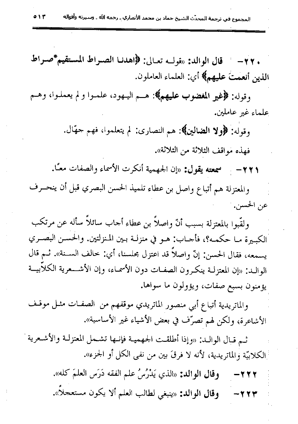 220 - قال الوالد: "قوله تعالى: {اهدنا الصراط المستقيم*صراط الذين أنعمتَ عليهم} أي: العلماء العاملون.