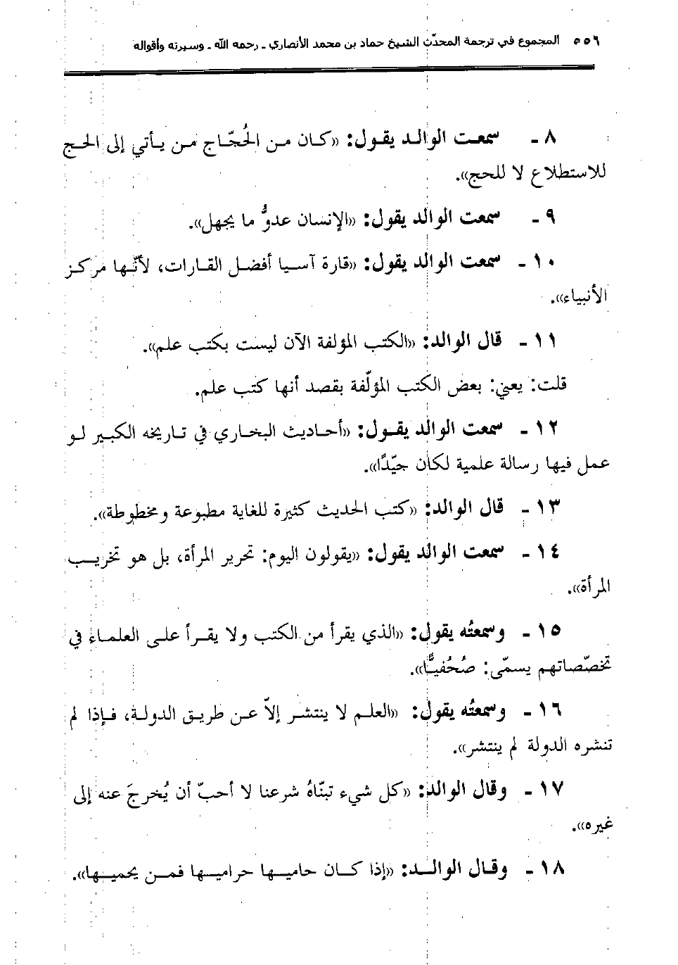 13ـ قال الوالد: "كتب الحديث كثيرة للغاية مطبوعة ومخطوطة".