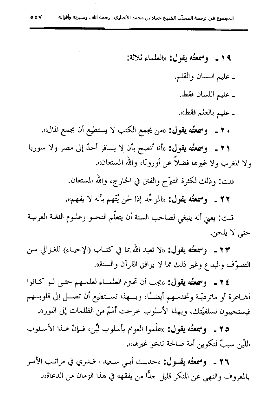 22ـ وسمعتُه يقول: "الموحِّد إذا لحن يُتّهم بأنه لا يفهم".