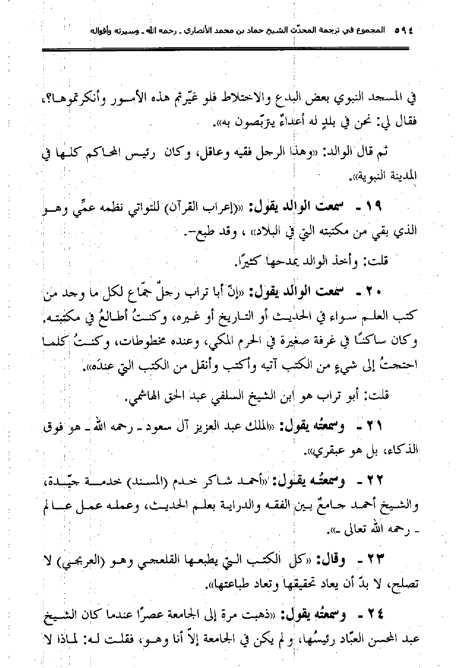 23ـ وقال: "كل الكتب التي يطبعها القلعجي وهو (العربجي) لا تصلح، لا بدّ أن يعاد تحقيقها وتعاد طباعتها".