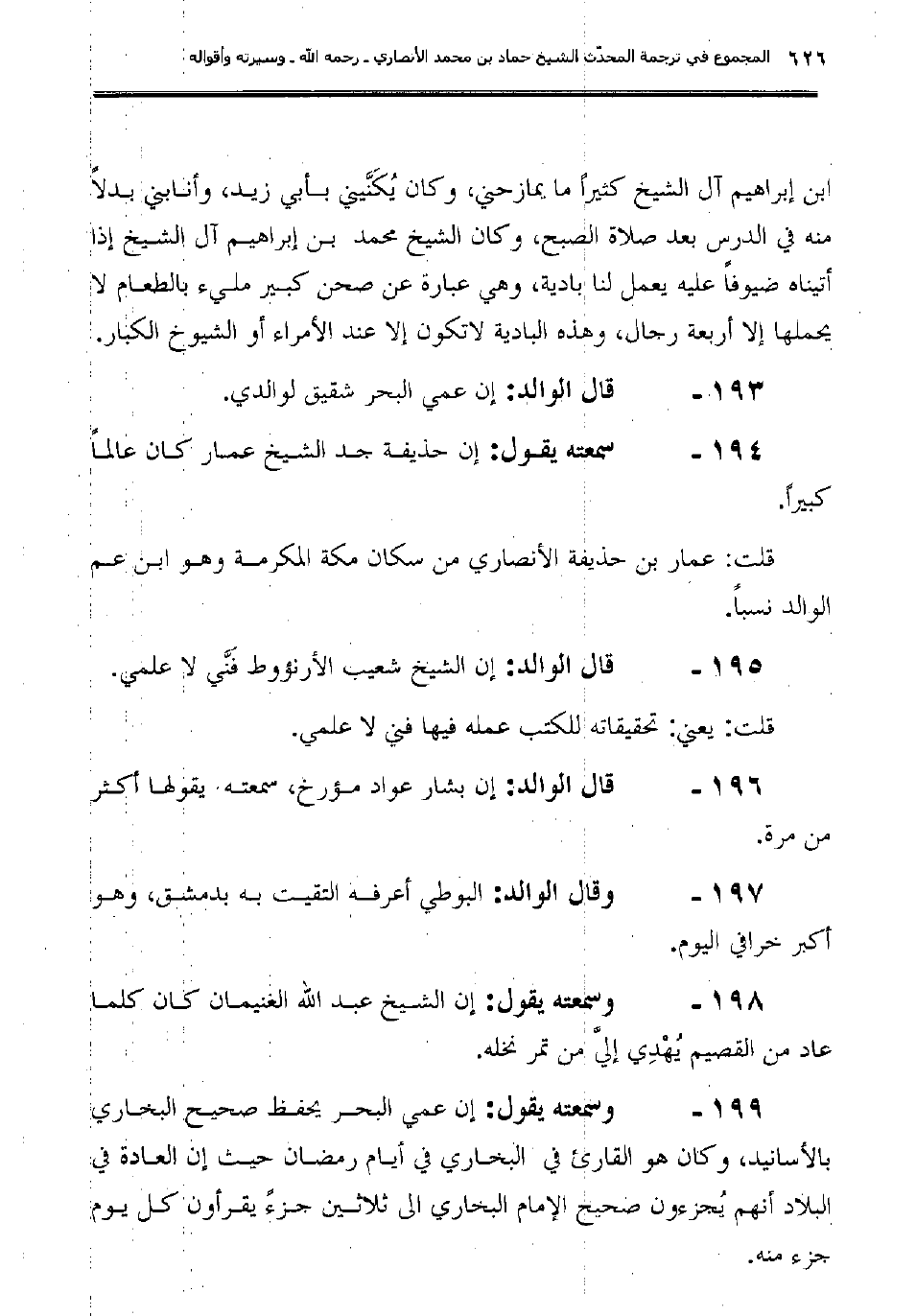 196ـ قال الوالد: "إن بشار عواد مؤرخ، سمعته يقولها أكثر من مرة."