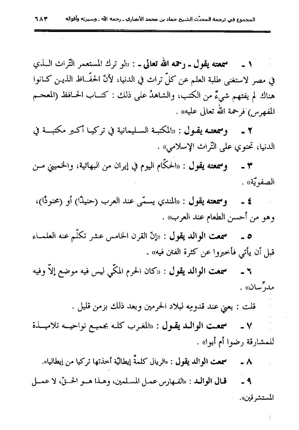 9ـ قال الوالد: "الفهارس عمل المسلمين، وهذا هو الحقّ، لا عمل المستشرقين".