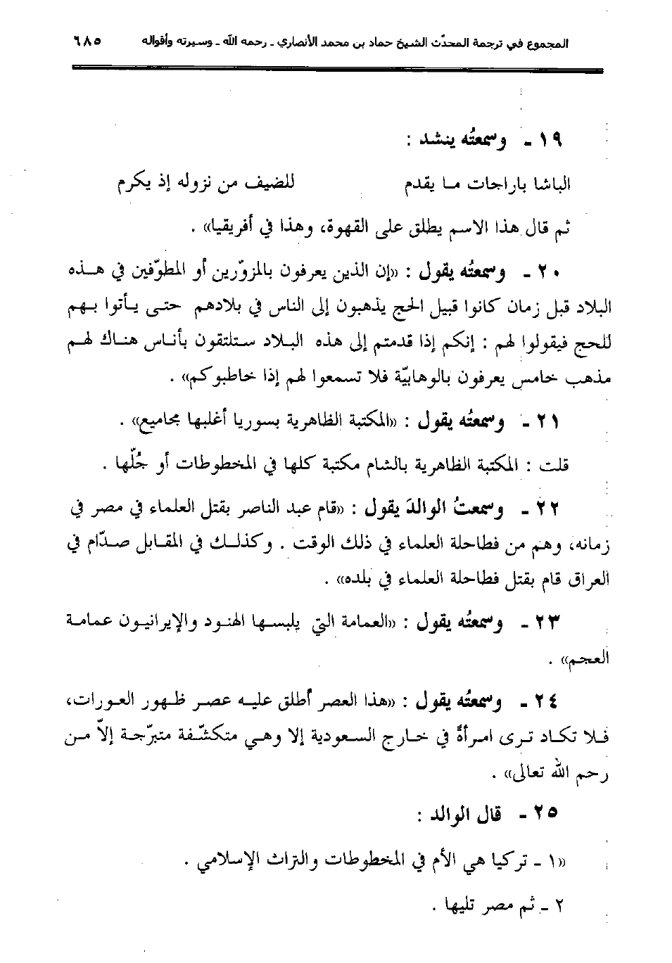 21ـ وسمعتُه يقول: "المكتبة الظاهرية بسوريا أغلبها مجاميع".