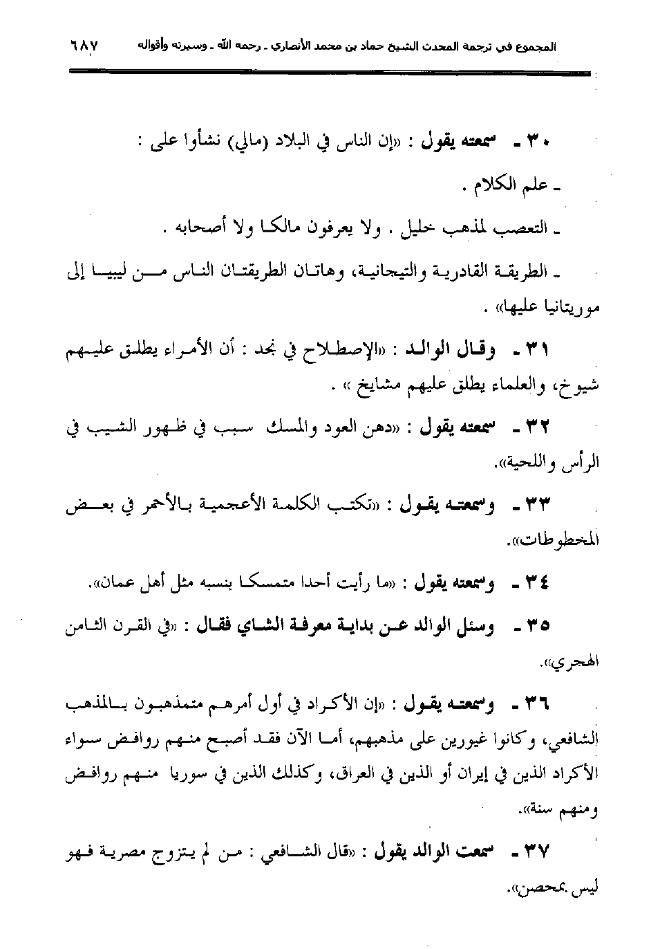 30ـ سمعته يقول: "إنّ الناس في البلاد (مالي) نشأوا على: