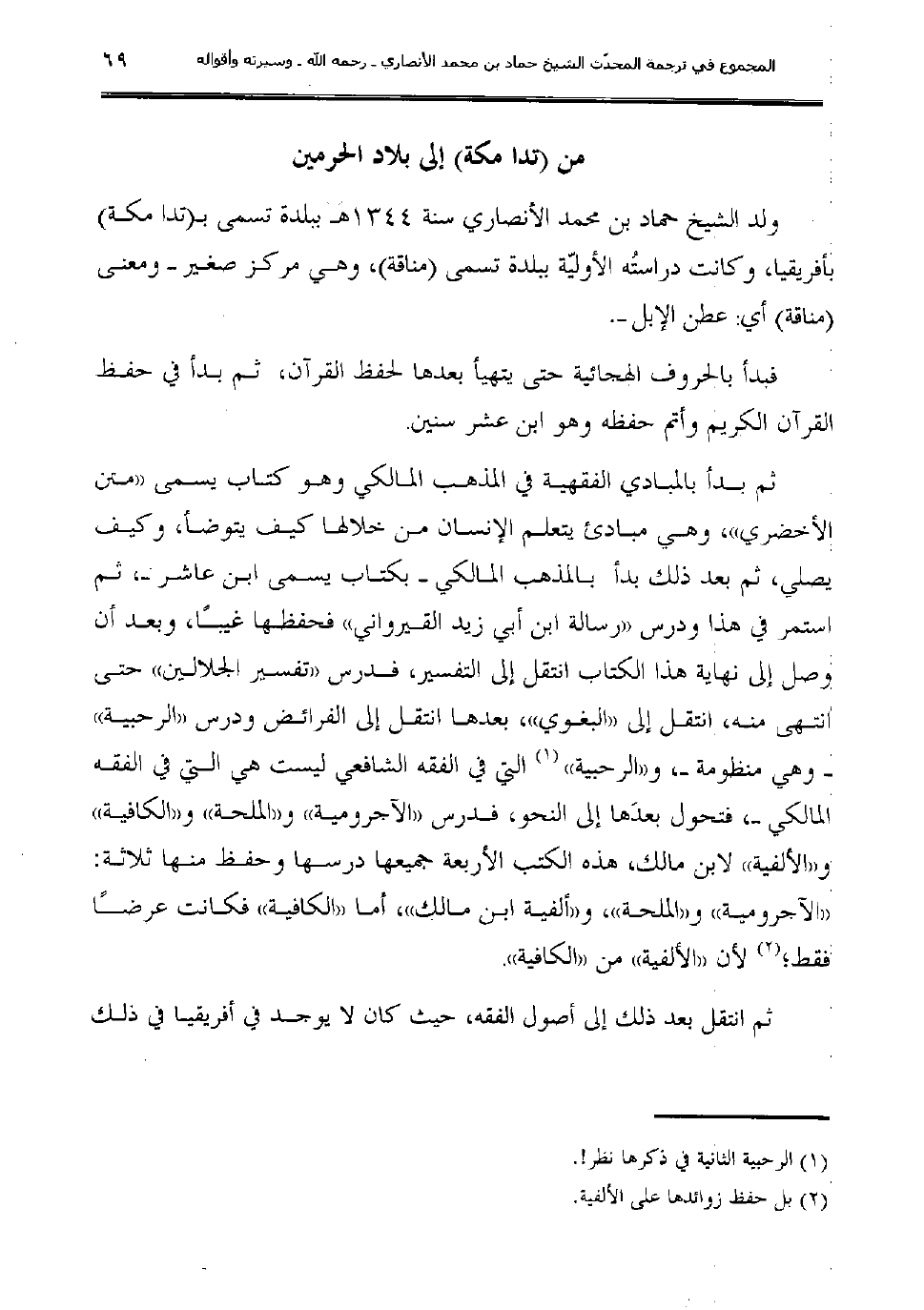 كتاب المجموع في ترجمة العلامة المحدث الشيخ حماد بن محمد الأنصاري (رحمه الله) (اسم الجزء: 1)