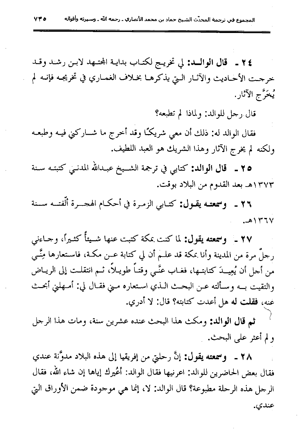 25ـ قال الوالد: "كتابي في ترجمة الشيخ عبد الله المدني كتبته سنة 1373هـ بعد القدوم من البلاد بوقت.