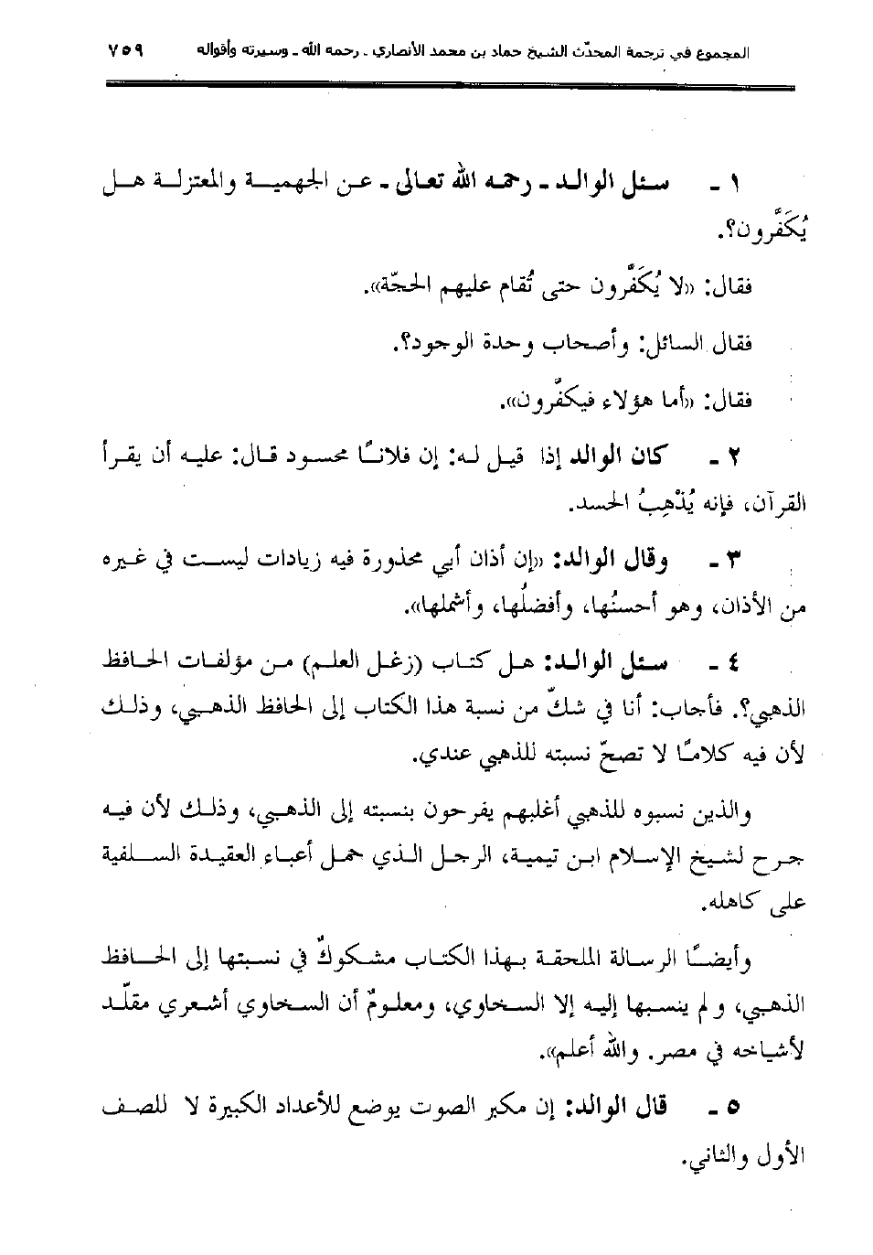 1ـ سئل الوالد -رحمه الله تعالى- عن الجهمية والمعتزلة هل يُكَفَّرون؟.