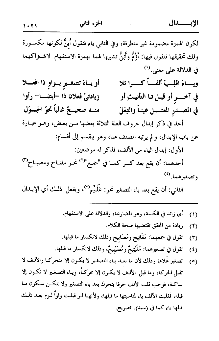 أخذ في ذكر إبدال حروف العلة الثلاثة بعضها من بعض، وهو عبارة عن باب الإبدال، ولم يرتبه المصنف هنا، وهو ينقسم إلى أقسام: