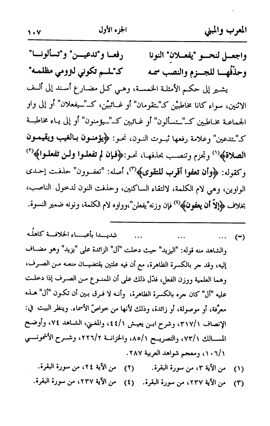 يشير إلى حكم الأمثلة الخمسة, وهي كل مضارع أسند إلى ألف الأثنين, سواء كانا مخاطبين ك"تقومان "