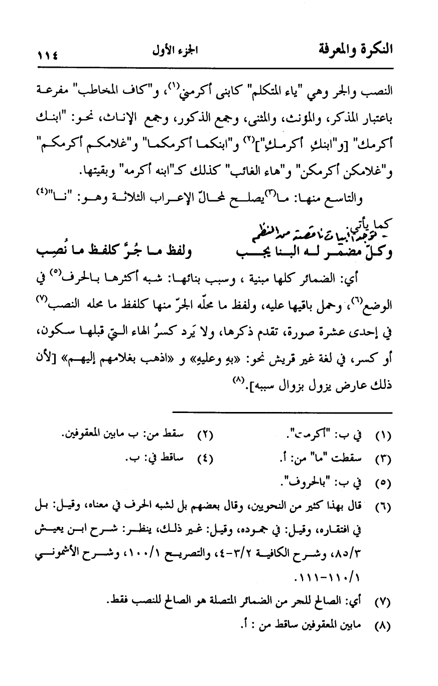 و"غلامكن أكرمكن " وهاء الغائب " كذلك كـ"ابنه أكرمه " وبقيتها.