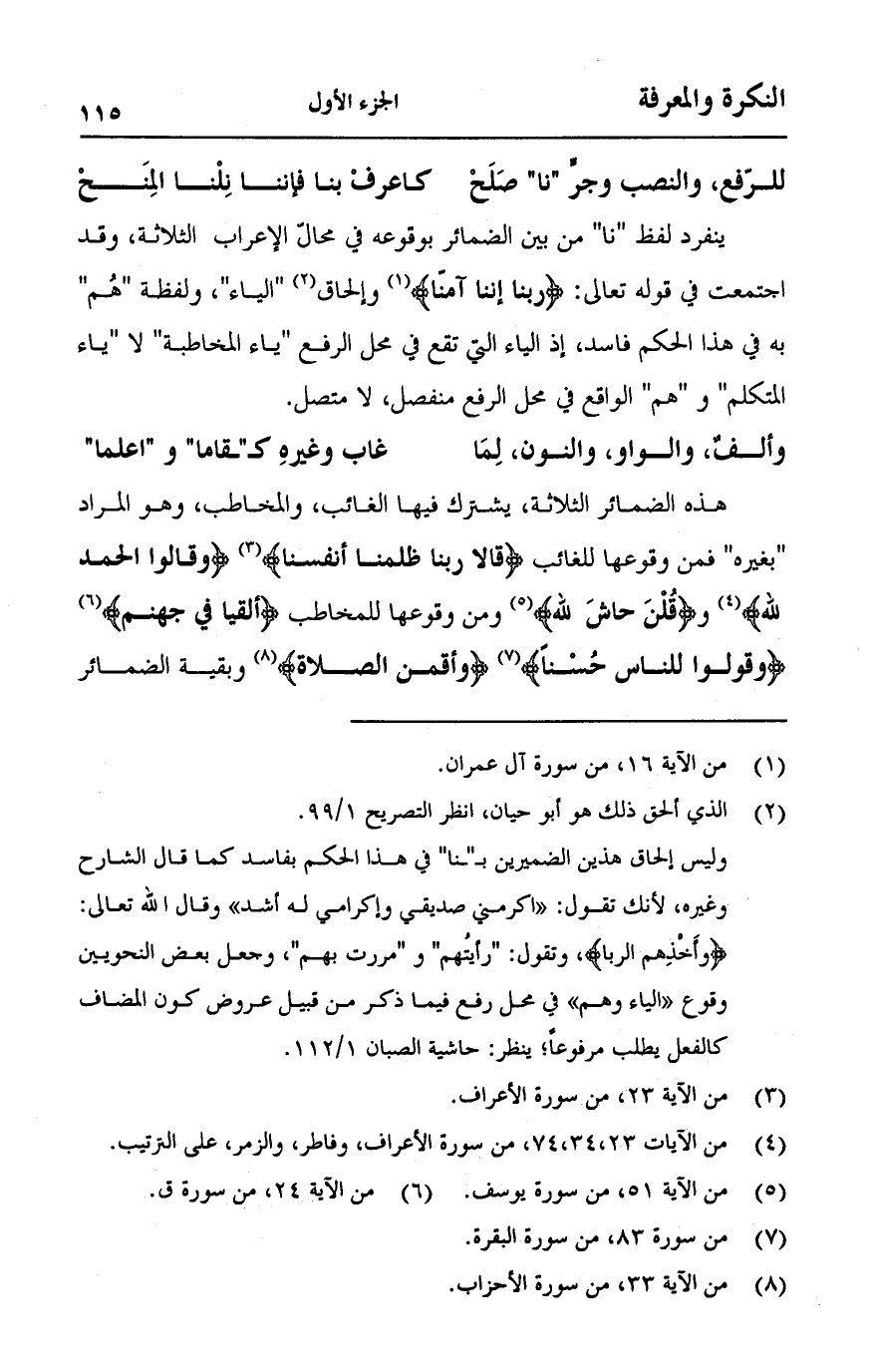 هذه الضمائر الثلاثة, يشترك فيةا الغائب, والمخاطب, وهو المرد " بغيره " فمن وقوعها للغائب {قالا ربنا ظلمنا أنفسنا} [الأعراف:23] {وقالوا الحمد لله} [الأعراف:23] [فاطر:34] [الزمر:74]