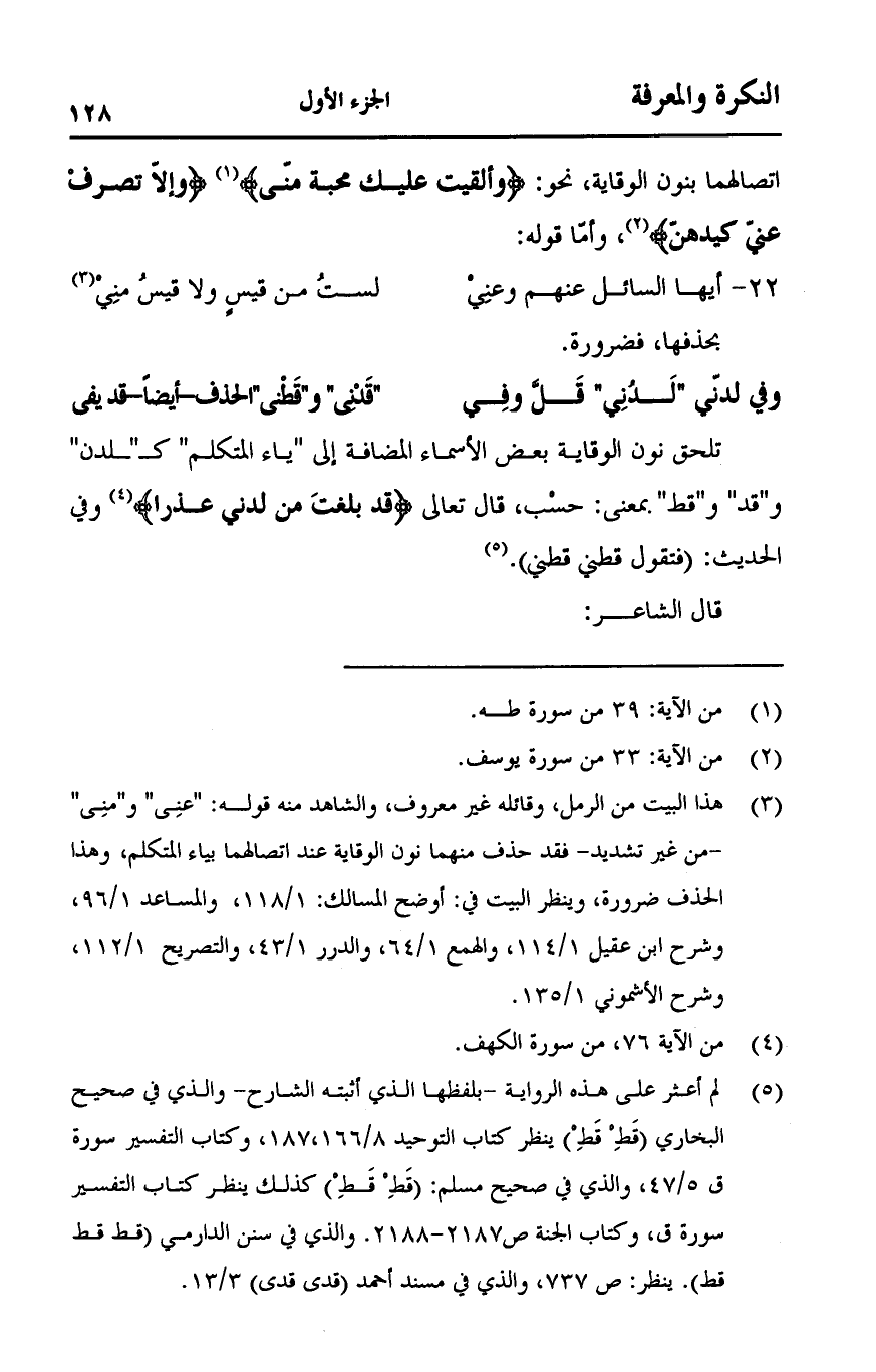 وفي لدنّي "لدني" قل وفي ... "قدني" و "قطني" الحذف - أيضاً - قد يفي
