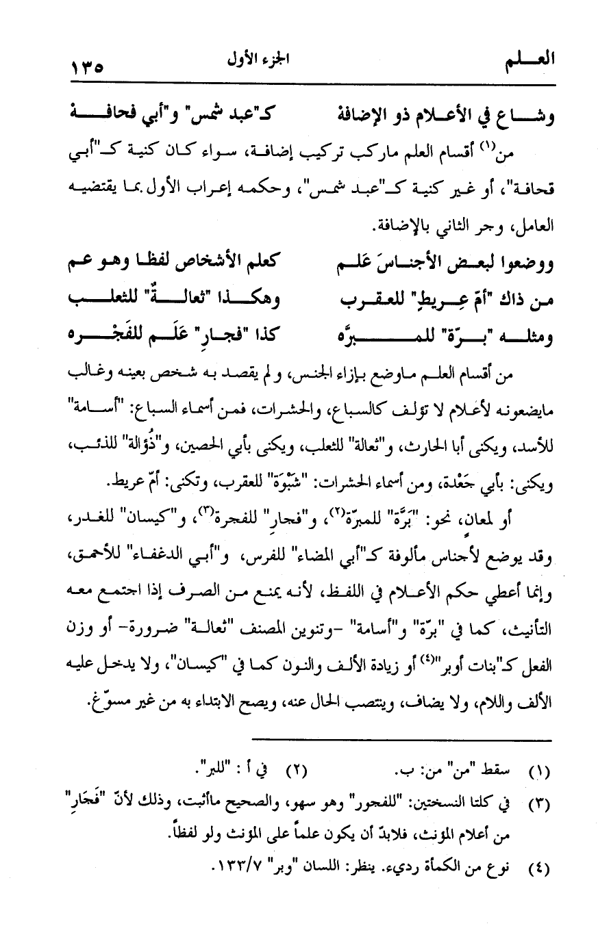 وشاع في الأعلام ذو الإضافه ... كـ"عبد شمس" و"أبي فحافه