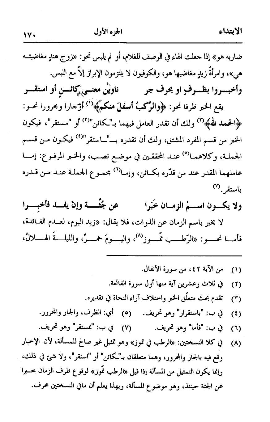 (وأخبروا بظرفٍ أو بحرف جر ... ناوين معنى كائنٍ أو استقر)