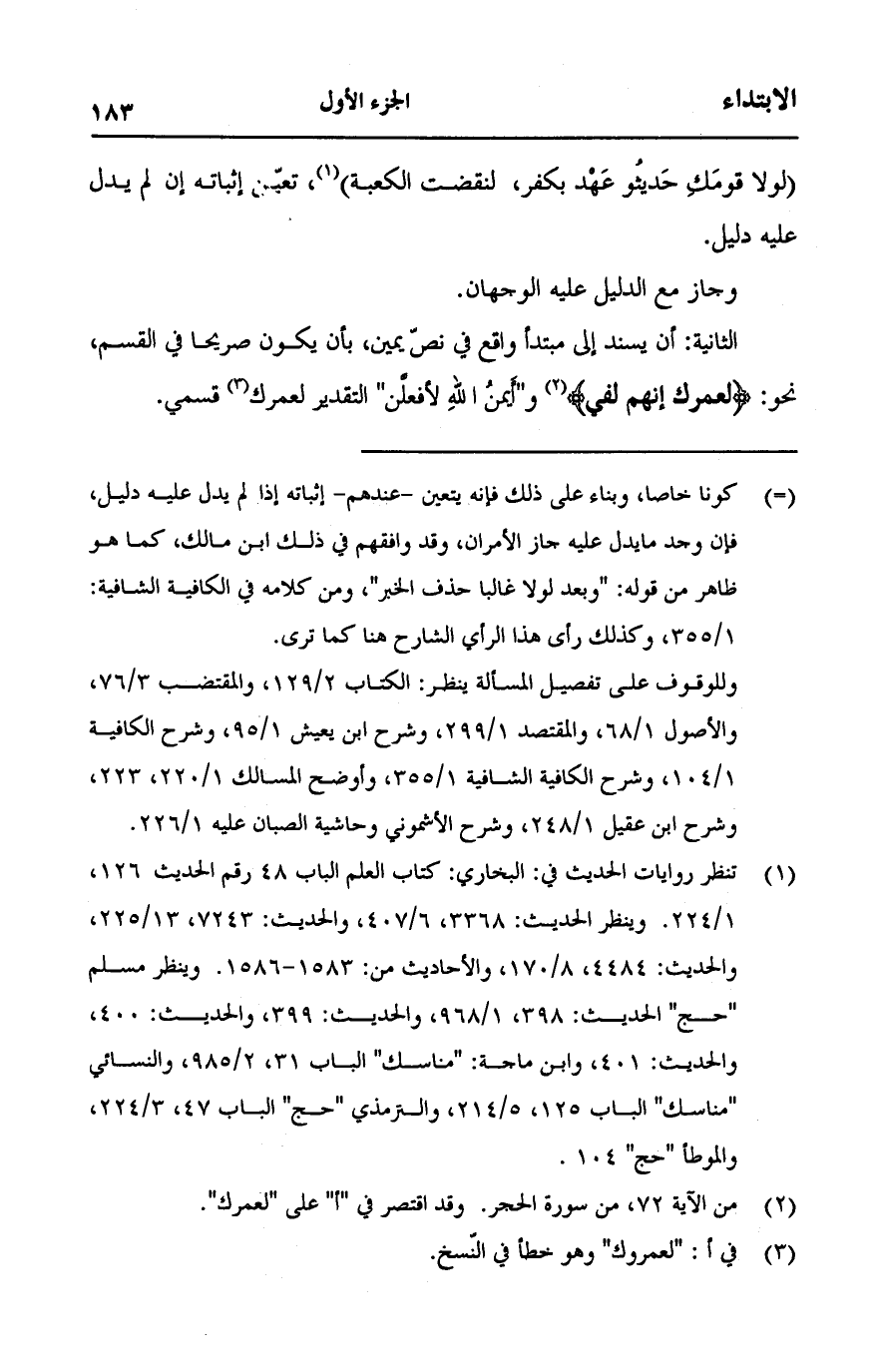 (لولا قومك حديثو عهد بكفر، لنقضت الكعبة)، تعين إثباته إن لم يدل عليه دليل.
