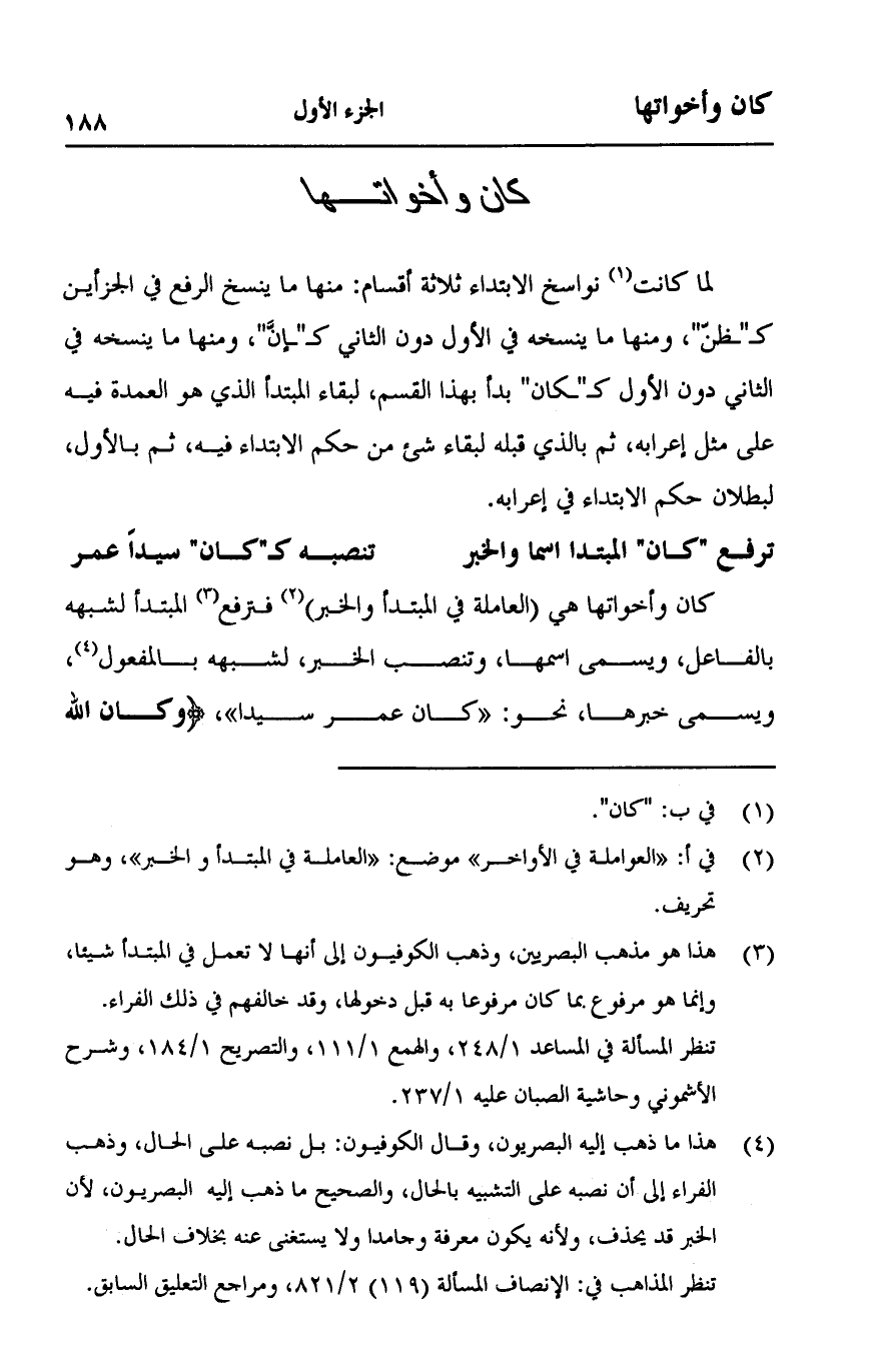 (ترفع "كان" المبتدأ اسما والخبر ... تنصبه كـ"كان" سيداً عمر)