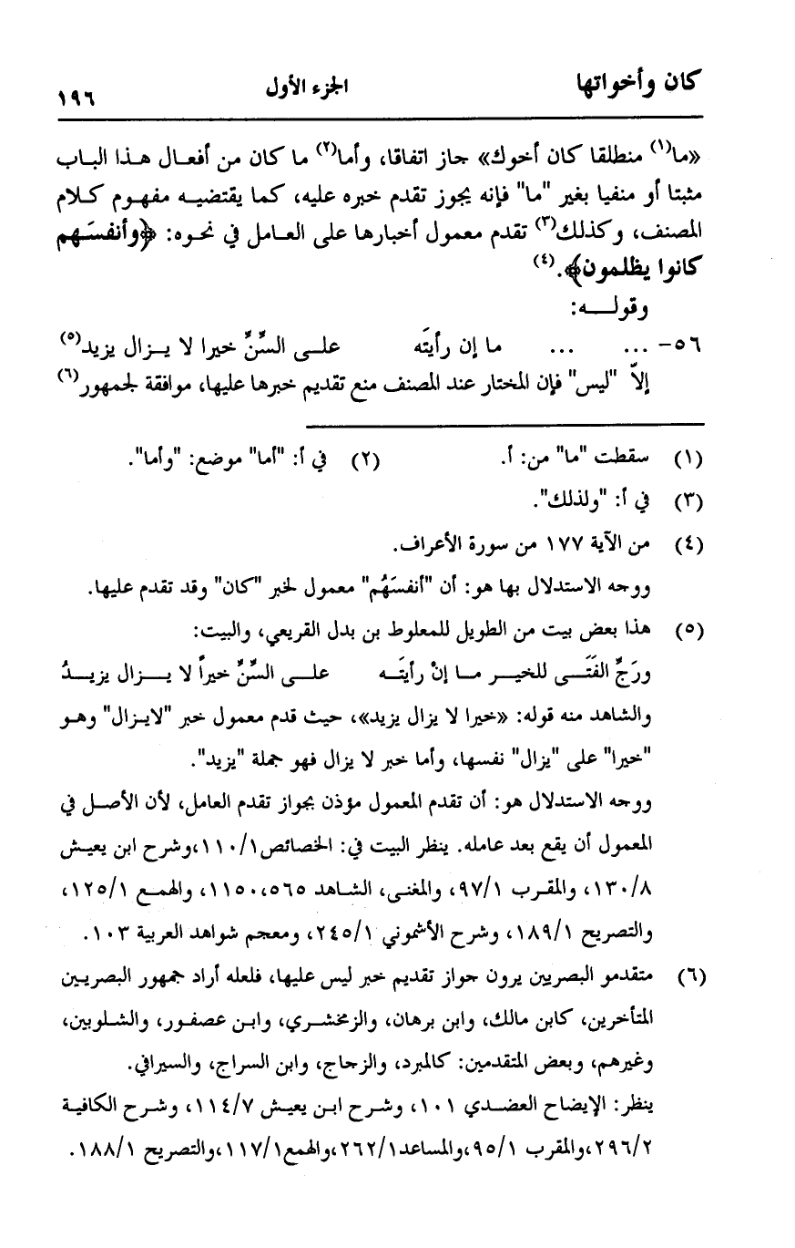 "ما منطلقا كان أخوك" جاز اتفاقا، وأما ما كان من أفعال هذا الباب مثبتا أو منفيا بغير "ما" فإنه يجوز تقدم خبره عليه، كما يقتضيه مفهوم كلام المصنف، وكذلك تقدم معمول أخبارها على العامل في نحوه: {وَأَنفُسَهُمْ كَانُوا يَظْلِمُونَ} [الأعراف:177].