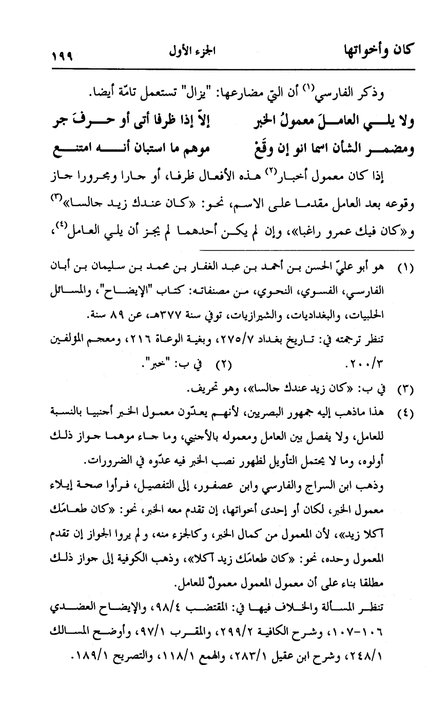 (ولا يلي العامل معمول الخبر ... إلا إذا ظرفا أتى أو حرف جر)