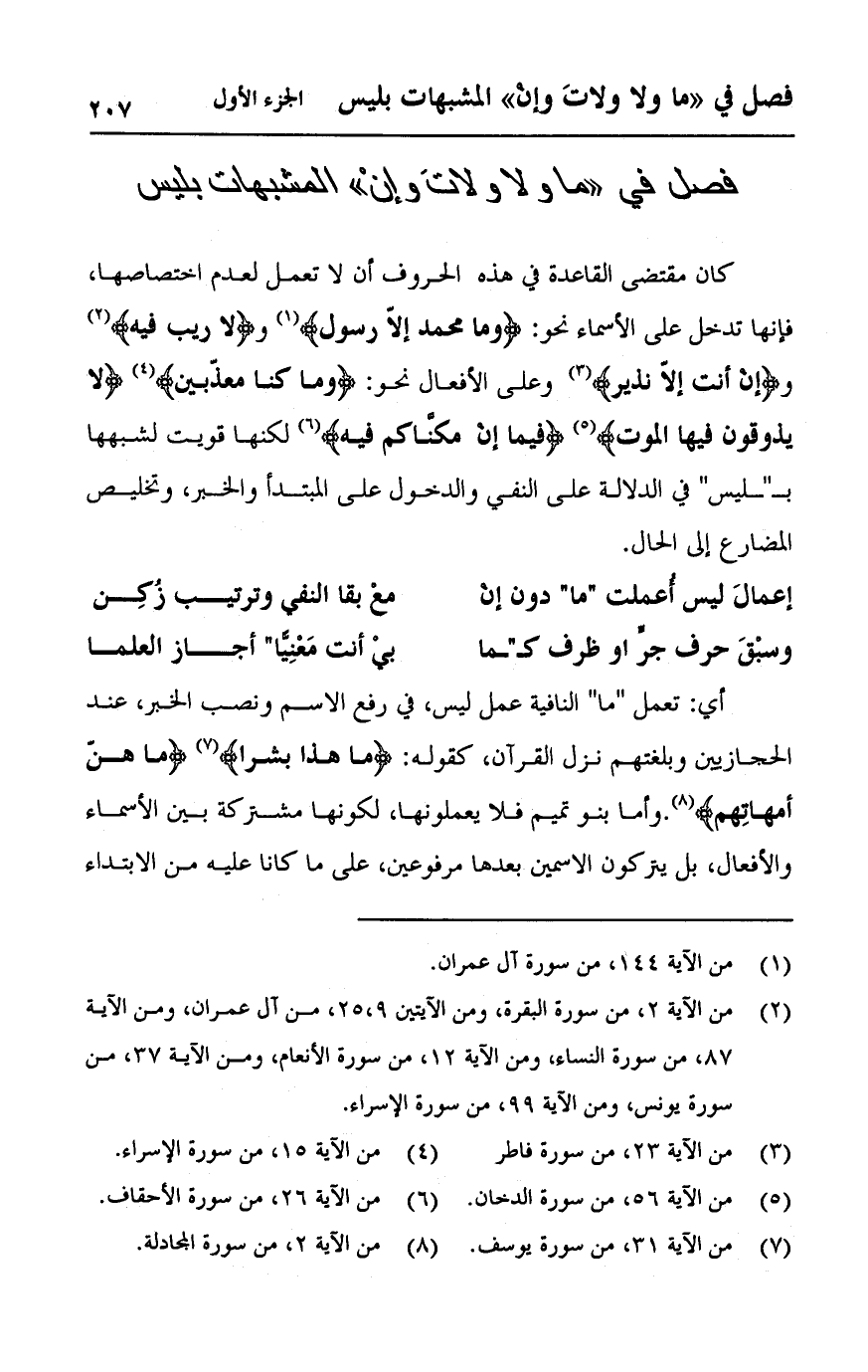فصل في "ما ولا ولات وإن" المشبهات بليس