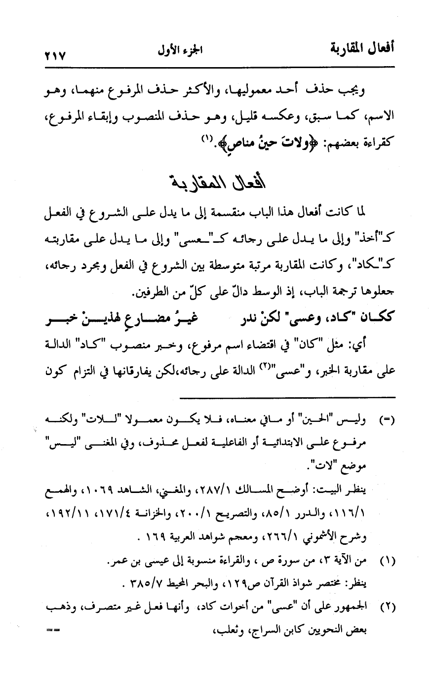 (ككان "كاد، وعسى" لكن ندر ... غير مضارعٍ لهذين خبر)