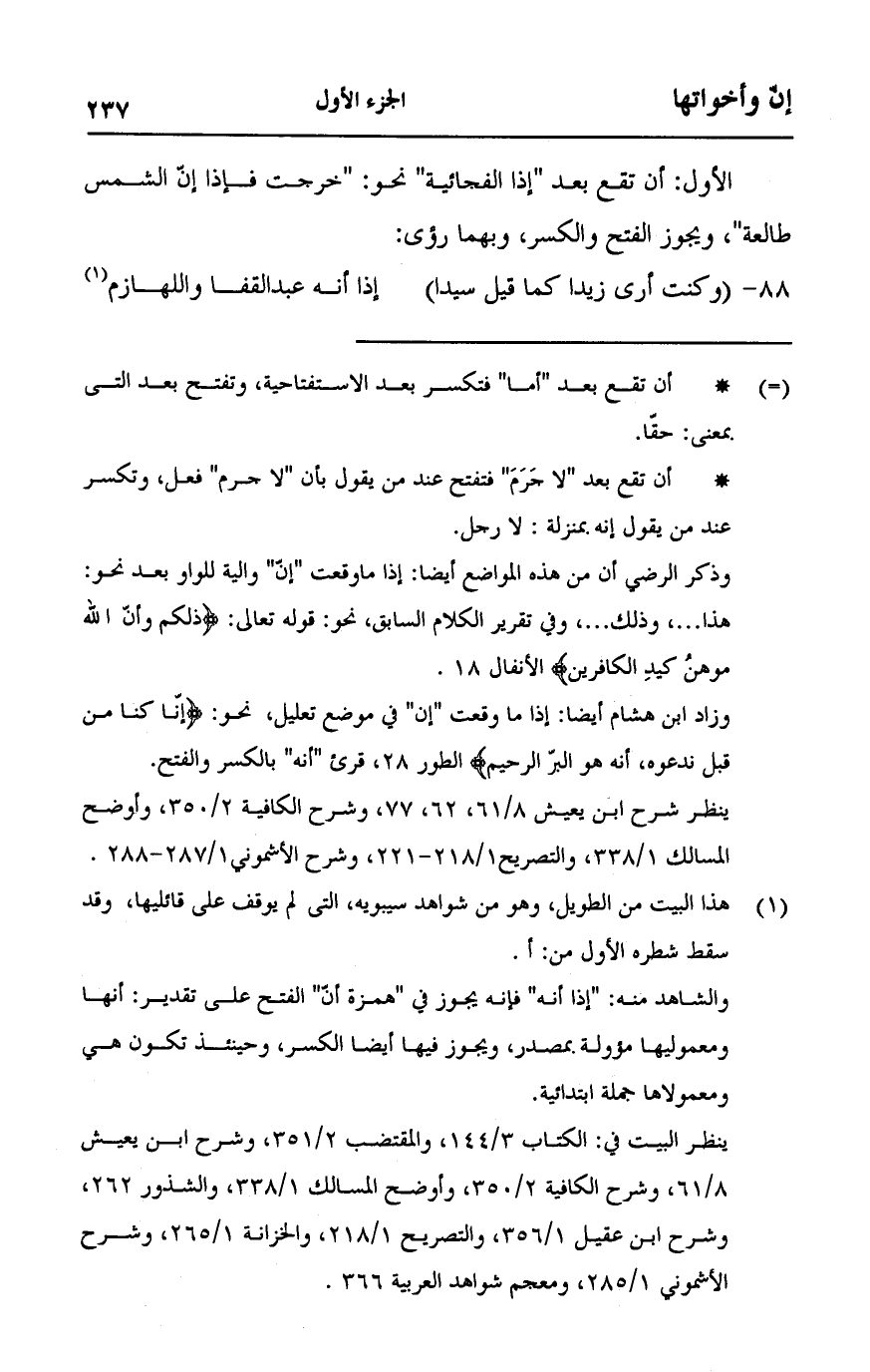الأول: أن تقع بعد "إذا الفجائية: نحو: "خرجت فإذا إن الشمس طالعة"، ويجوز الفتح والكسر، وبهما رؤى: