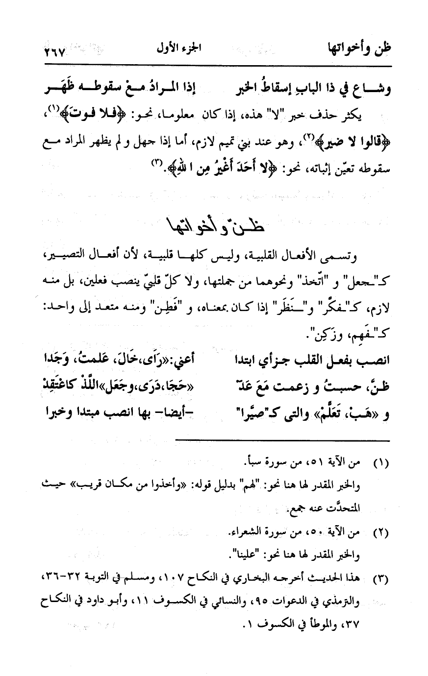 (انصب بفعل القلب جزأي ابتدا ... أعني: "راي، خال، علمت، وجدا)
