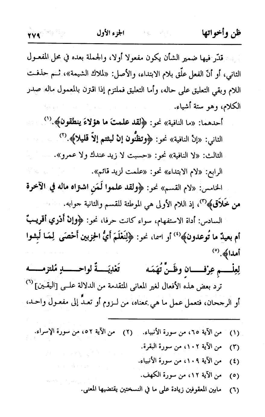 أحدهما: "ما النافية" نحو: {لَقَدْ عَلِمْتَ مَا هَؤُلاءِ يَنطِقُونَ} [الأنبياء:65].