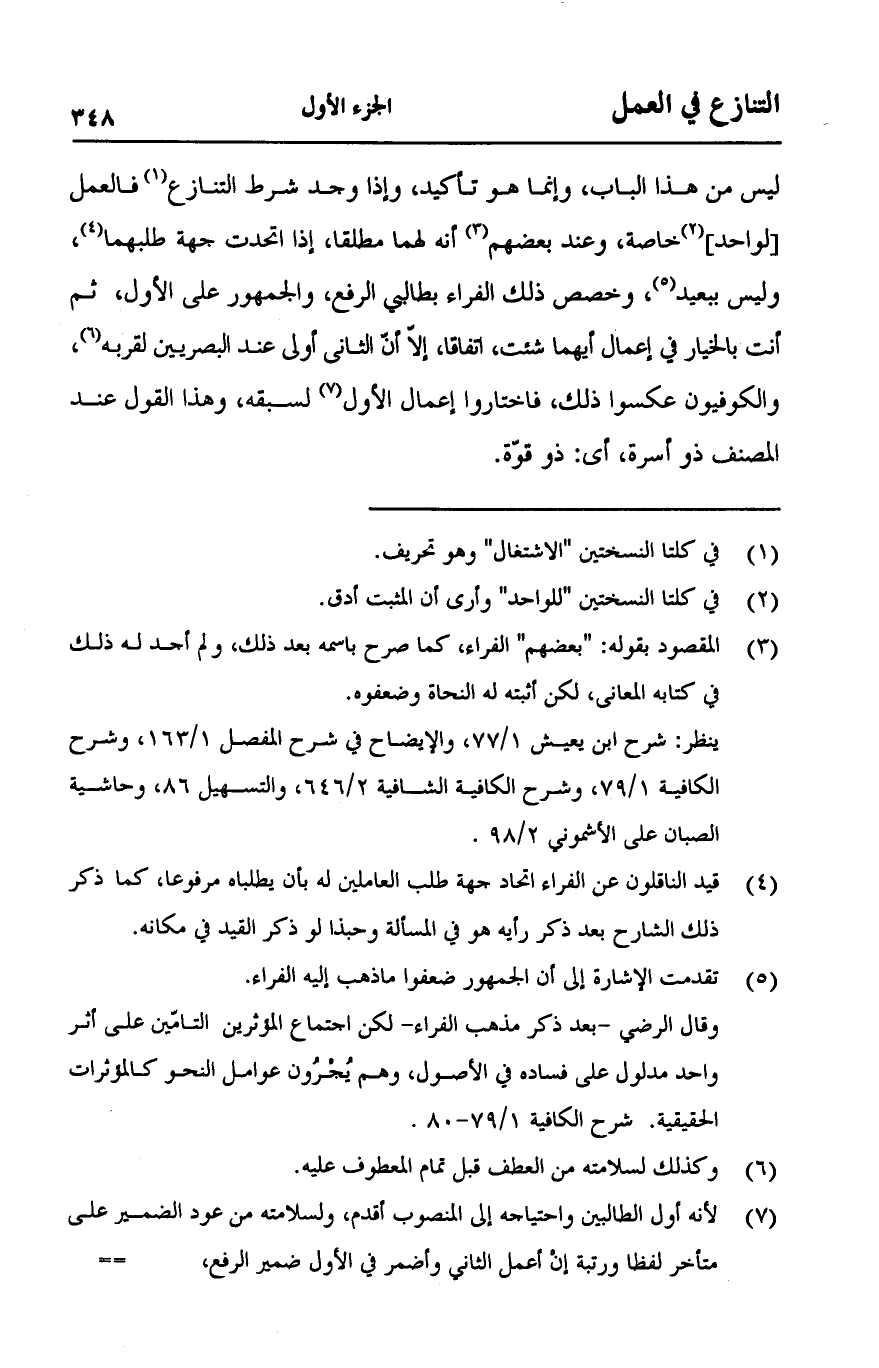 ليس من هذا الباب، وغنما هو تأكيد، وإذا وجد شرط التنازع فالعمل [لواحد] خاصة، وعند بعضهم أنه لهما مطلقا، إذا اتحدت جهة طلبهما، وليس ببعيد، وخصص ذلك الفراء بطالبي الرفع، والجمهور على الأول، ثم أنت بالخيار في إعمال أيهما شئت، اتفاقا، إلا أنّ الثاني أولى عند البصريين لقربه، والكوفيون عكسوا ذلكن فاختاروا إعمال الأول لسبقه، وهذا القول عند المصنف ذو أسرة، أي: ذو قوّة.