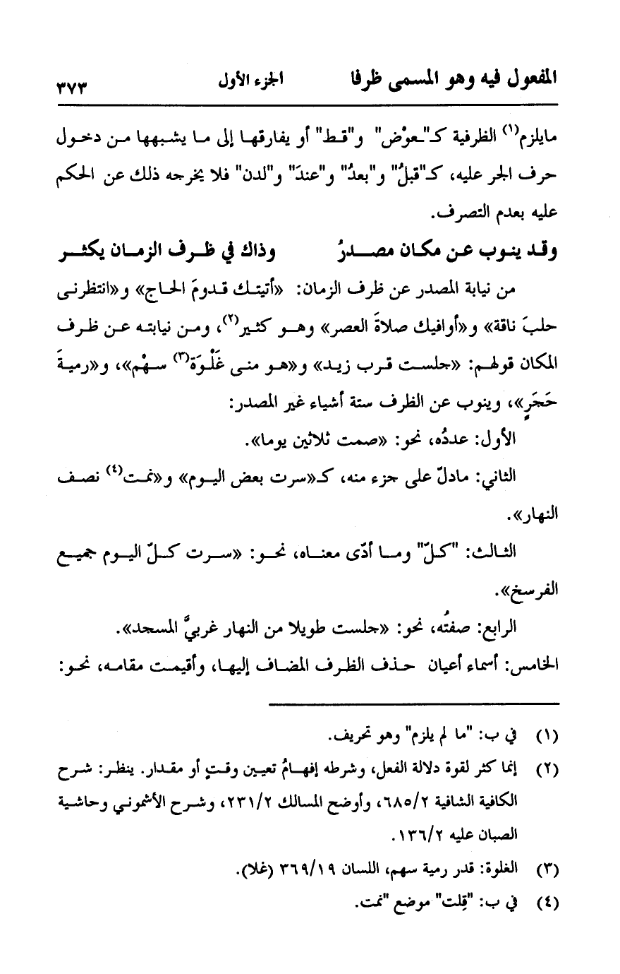 (وقد ينوب عن مكان مصدرُ ... وذاك في ظرف الزمان يكثر)