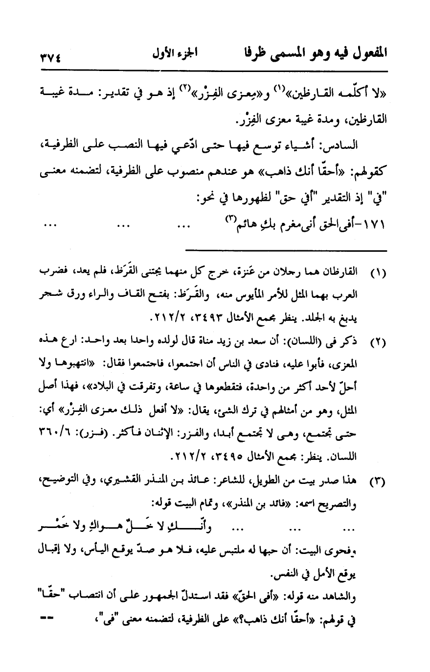 "لا أكلمه القارظين" و "مِعزى الفِزر" إذ هو في تقدير: مدة غيبة القارظين، ومدّة غيبة معزى الفِزْر.