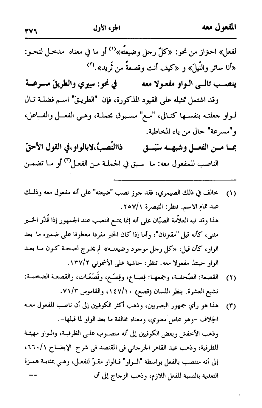 (ينصب تالى الواو مفعولا معه ... في نحو: سِيري والطريقَ مسرعة)